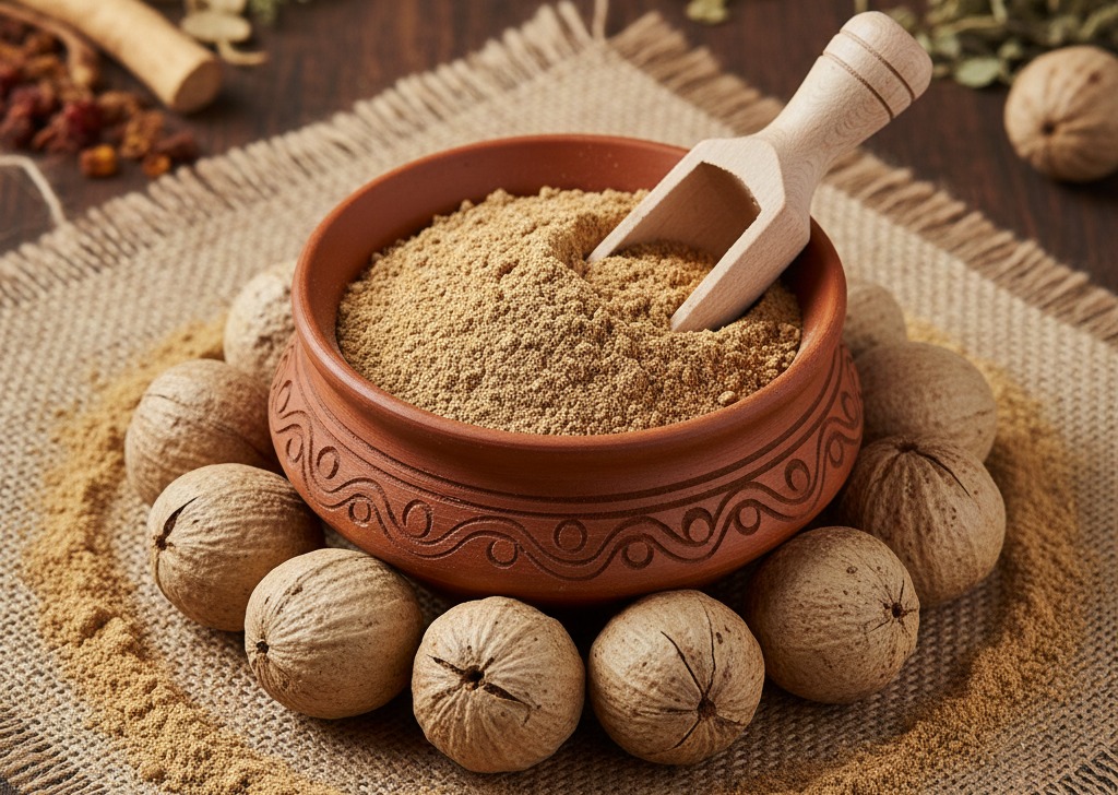Just 1 tsp Baheda powder with warm water after meals makes digestion smooth without forcing the gut.